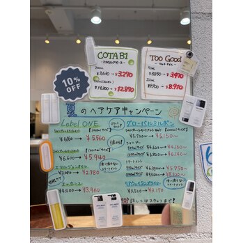 当店では現在、「夏のヘアケアキャンペーン」を開催中です!この機会に、髪の健康をしっかりと守りましょう!